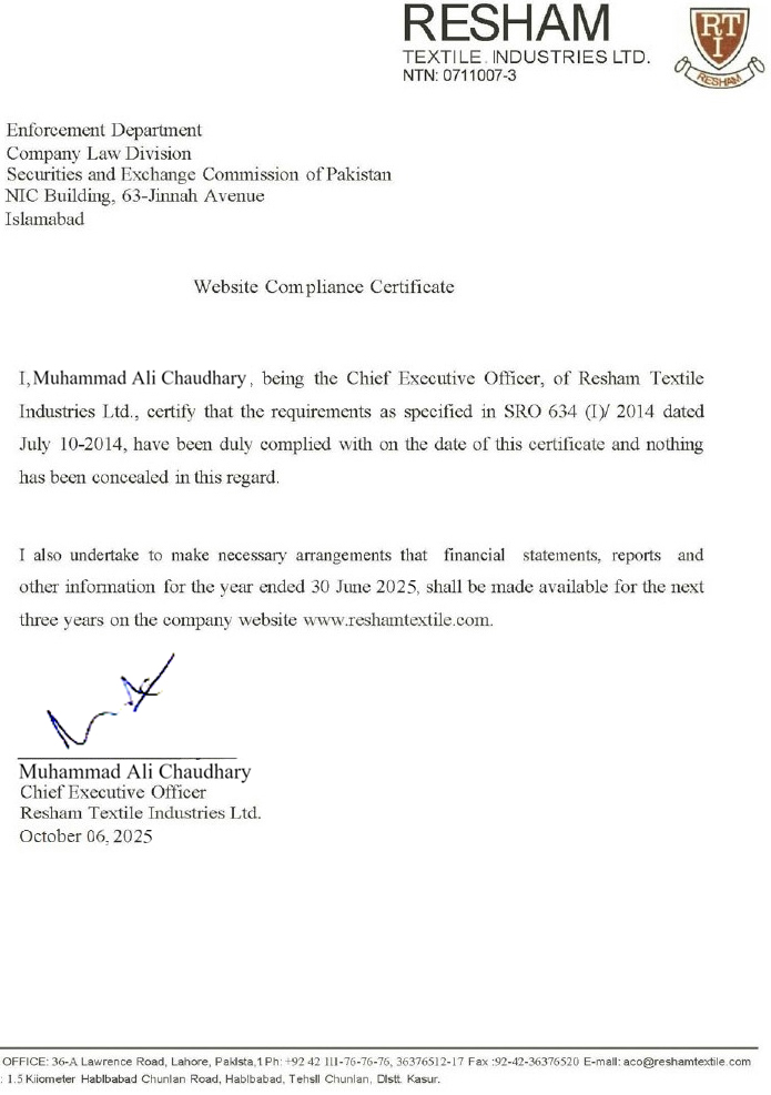 - Compliance Certificate